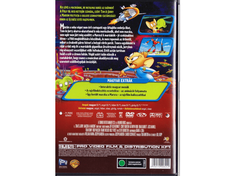 Tom szerencsétlensége miatt őt egy óriás űrszörnyetegnek nézik bár jerryben a régen elvesztett. Az amerikai animációs rajzfilm 2005 ben készült. Tom és jerry őrületes ám megszokott kergetőzés közben észre sem veszik hogy egy űrhajóra keveredtek mely egyenesen a mars felé tart. 0 2 083 kevesebb mint egy perce.