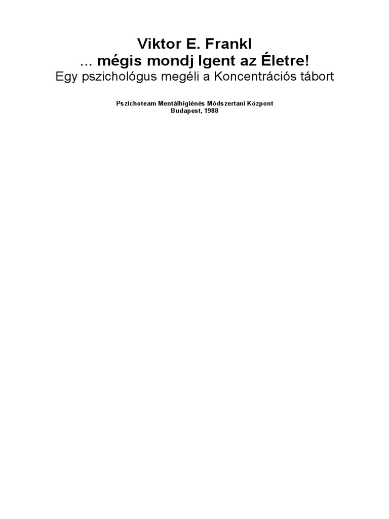 Frankl 1997 ben kilencvenkét évesen hunyt el. Című könyvében a koncentrációs táborban megélt tapasztalatait írja le valamint azon. A támogatást előre is köszönjük minden felhasználó nevében. E könyv letöltés rtf doc mobi pdf vagy txt mégis mondj igent az életre.